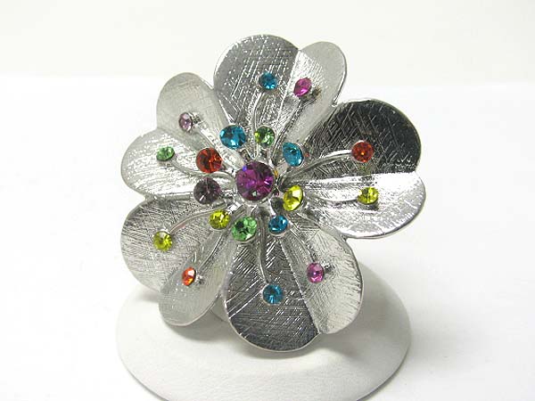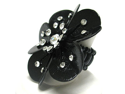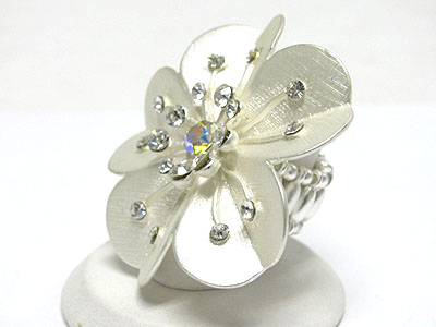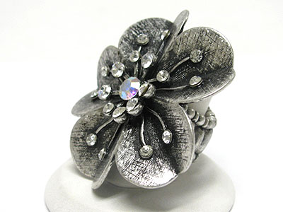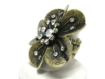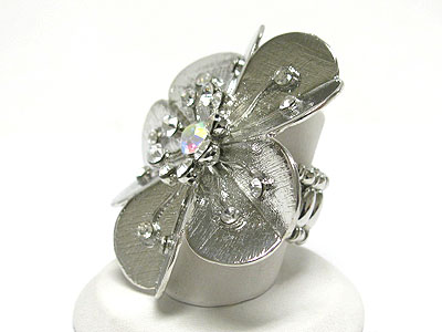 WHOLESALE CRYSTAL STUD METAL FLOWER STRETCH RING 351518