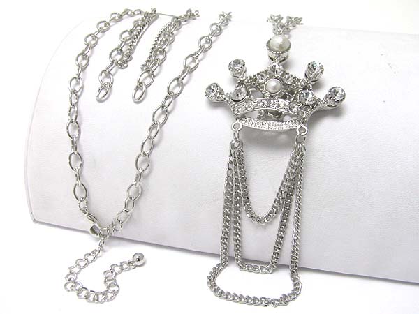 WHOLESALE CRYSTAL CROWN AND HANGING CHAIN LONG NECKLACE SET 351541