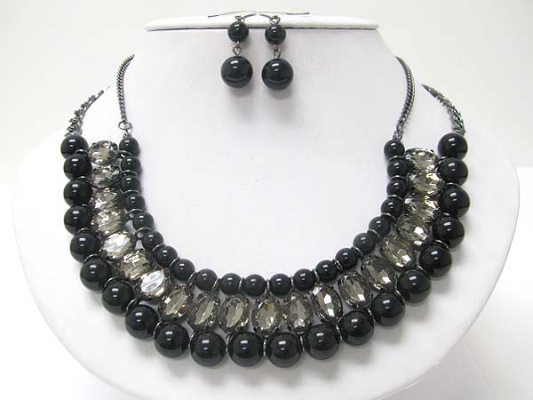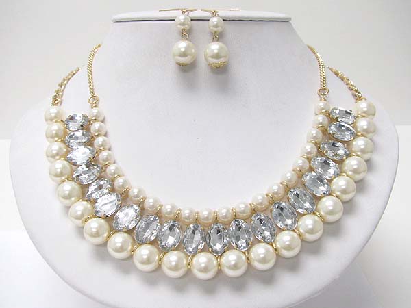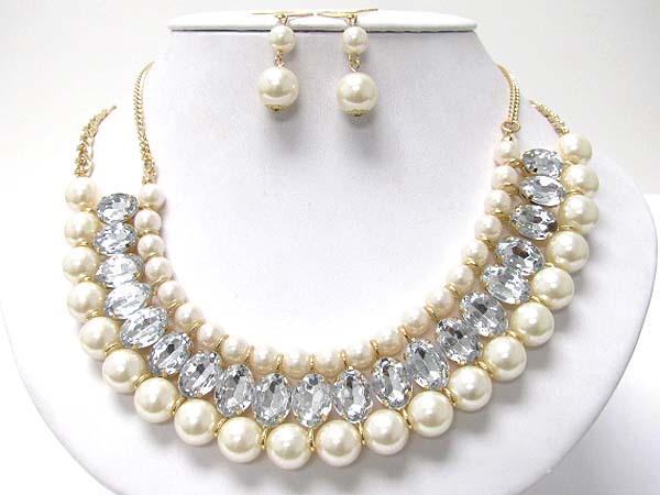 Pearl ball and facet glass stone necklace earring set