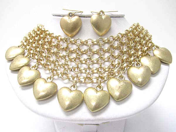Muli metal heart charm chain toggle bracelet