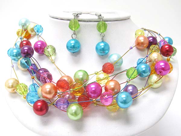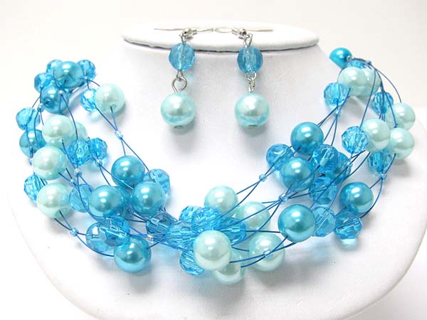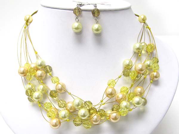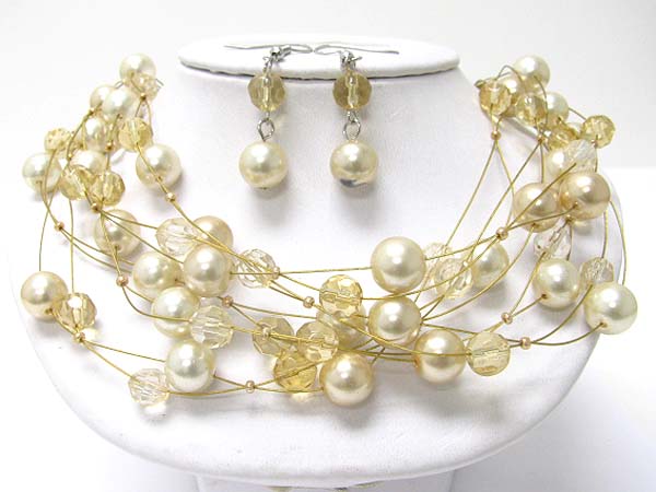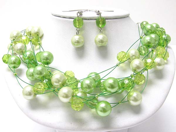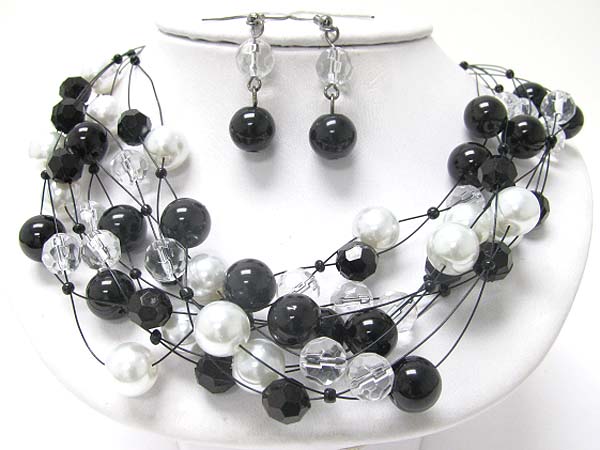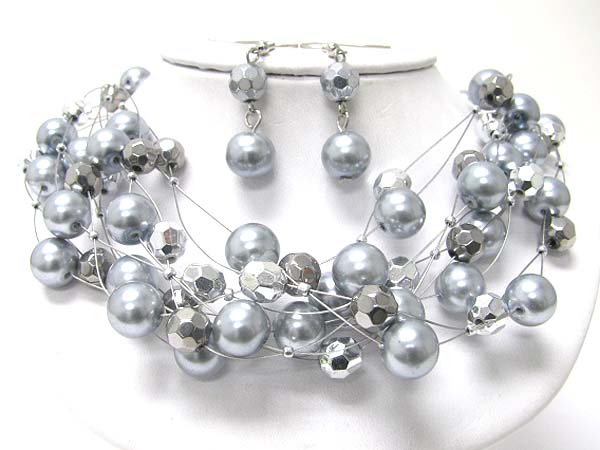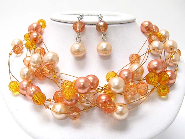 WHOLESALE PEARL BALL ILLUSION NECKLACE SET 351605