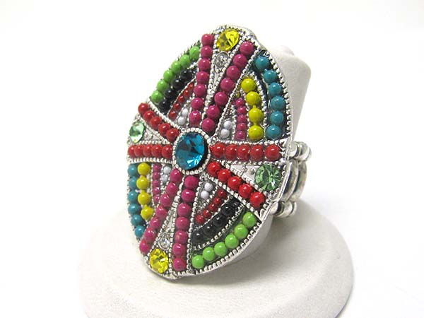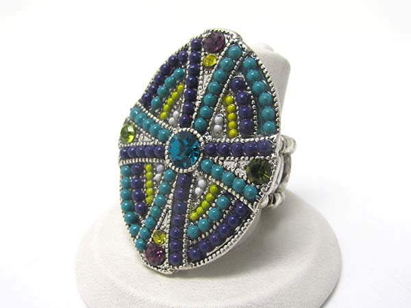 WHOLESALE CRYSTAL AND BEADS ART DECO STRETCH RING 351624