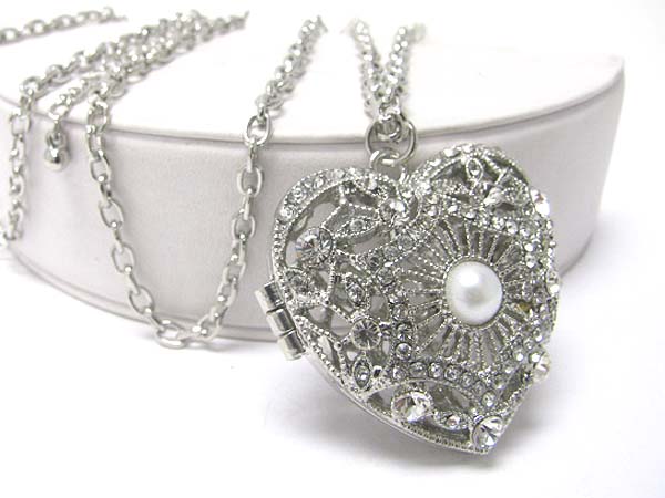 WHOLESALE CRYSTAL STUD HEART LOCKET LONG NECKLACE 351668