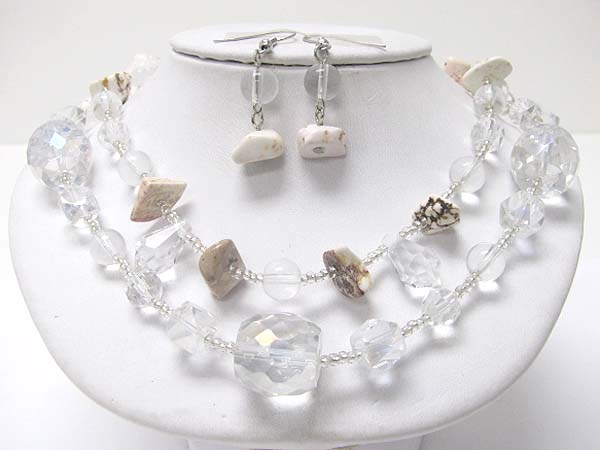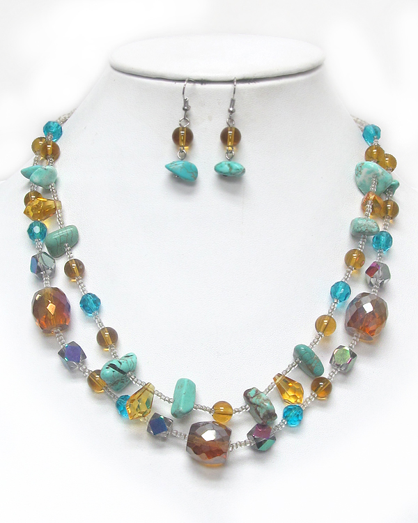 WHOLESALE NATURAL STONE AND FACET BEADS DOUBLE STRAND NECKLACE SET 351696