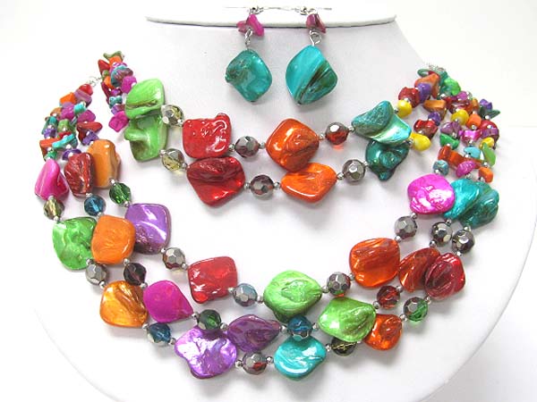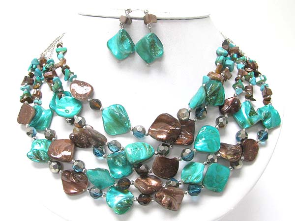 WHOLESALE MULTI LAYER SEA SHELL AND MIXED BEADS NECKLACE SET 351699