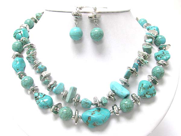 WHOLESALE DOUBLE STRAND NATURAL STONE NECKLACE SET 351701