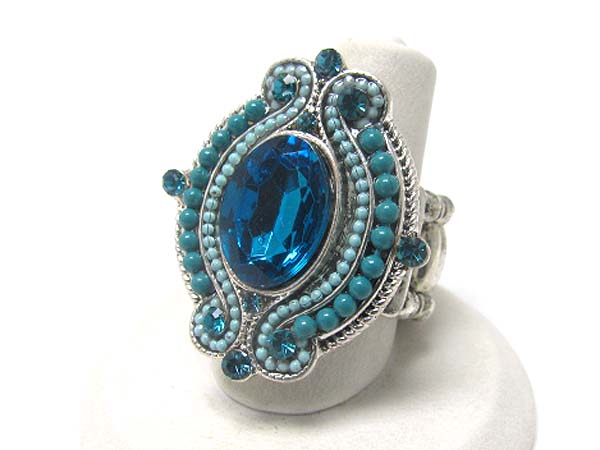 WHOLESALE CRYSTAL AND BEADS ART DECO STRETCH RING 351722