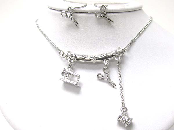 WHOLESALE SEWING THEME CHARM DANGLE NECKLACE EARRING SET 351734