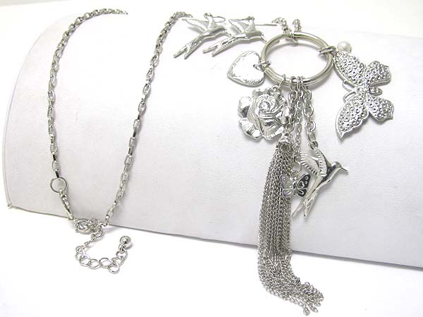 WHOLESALE CRYSTAL STUD BUTTERFLY PENDANT AND TASSEL DROP LONG NECKLACE EARRING SET 351738