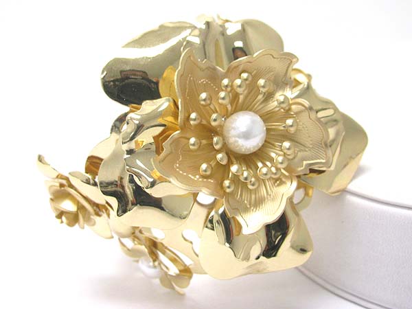 WHOLESALE METAL FLOWER TOP CUFF BANGLE 351763