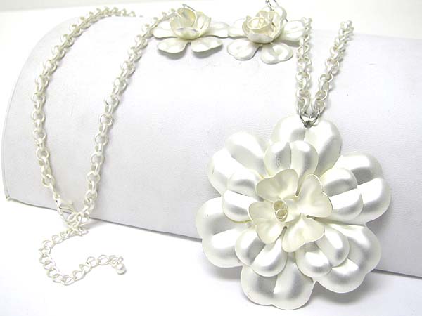 WHOLESALE LARGE METAL FLOWER PENDANT LONG NECKLACE SET 351782