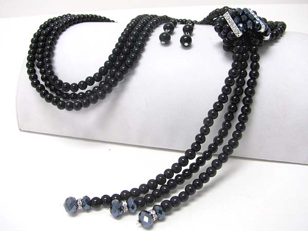 Triple row crystal stud facet beads knotted long necklace set