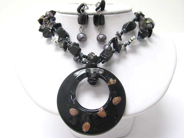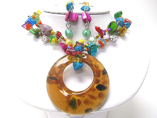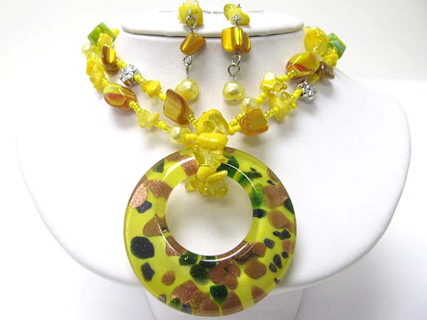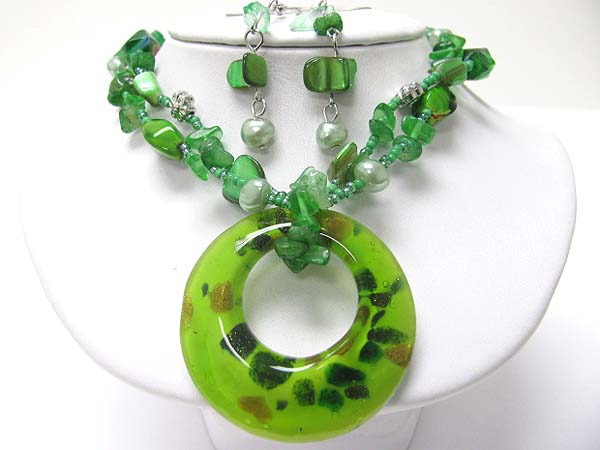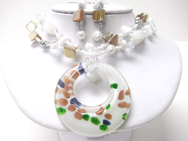 WHOLESALE MURANO GLASS DONUT AND SHELL BEADS NECKLACE SET 351824