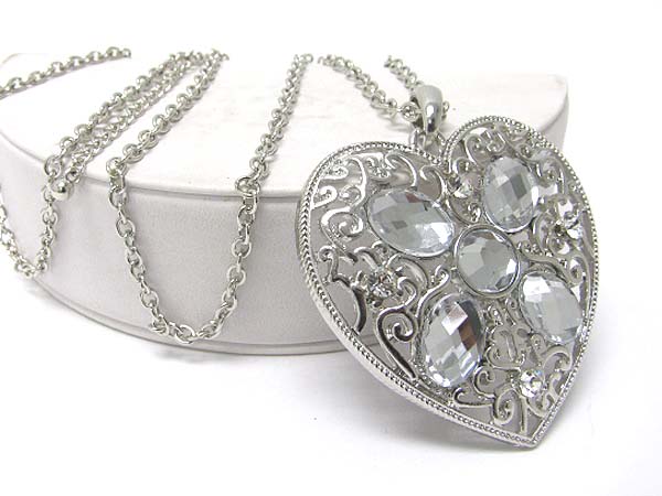 WHOLESALE CRYSTAL STUD LARGE HEART PENDANT LONG NECKLACE 351873