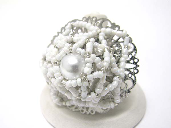 WHOLESALE PEARL AND SEED BEADS DECO FLOWER STRETCH RING 351933