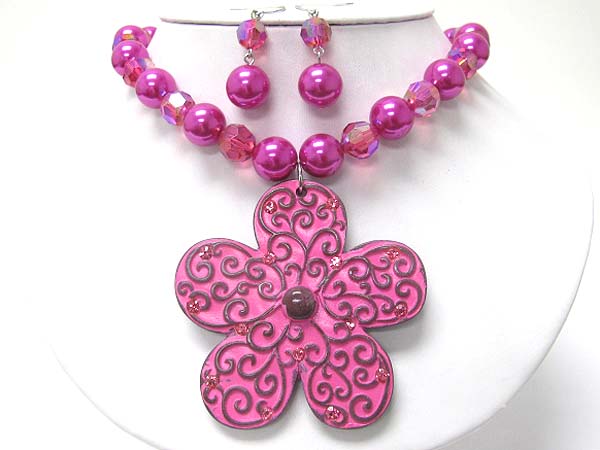 WHOLESALE CRYSTAL STUD METAL DECO LARGE FLOWER MEDALLION BEADS NECKLACE SET 351945