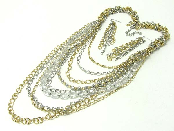 Facet glass and multi chain necklace set