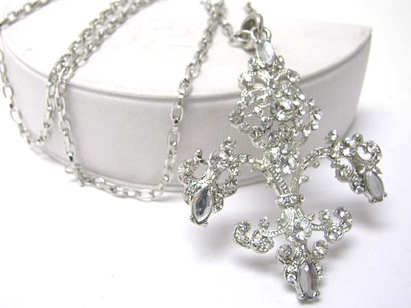WHOLESALE CRYSTAL FLEUR DE LIS PENDANT LONG NECKLACE? 351969