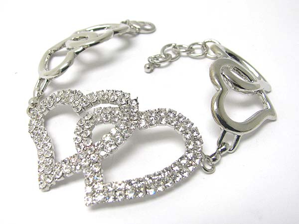 WHOLESALE CRYSTAL STUD DUAL HEART LINK BRACELET 351989