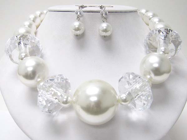 Large pearl ball and large beads ball link necklace set