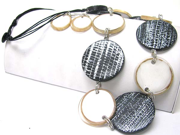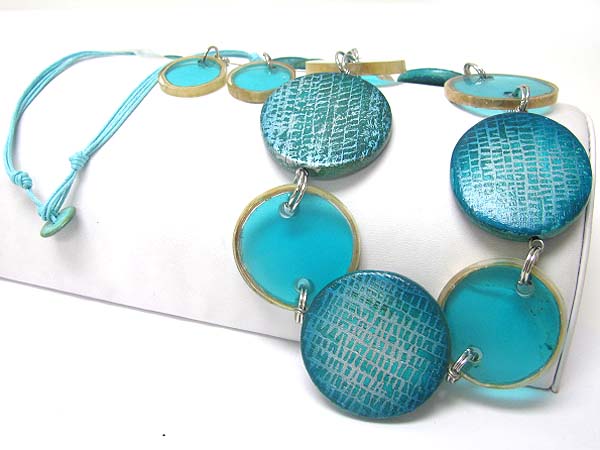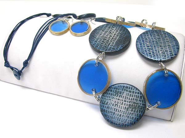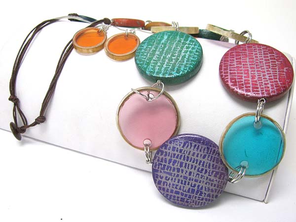 WHOLESALE ROUND WOODEN AND REGIN DISK LINK NECKLACE EARRING SET 352055