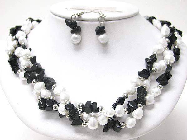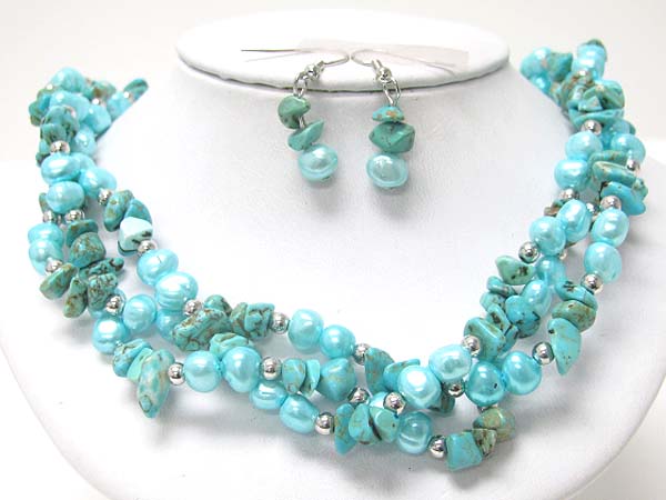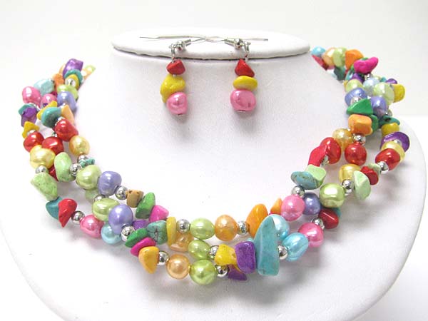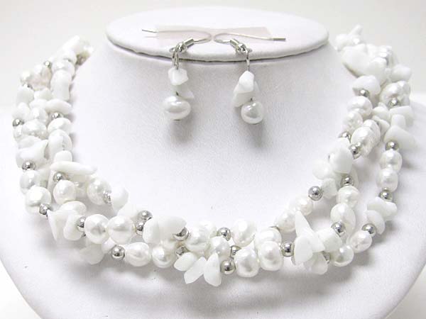 WHOLESALE MOP AND NATURAL CHIP STONE NECKLACE EARRING SET 352086