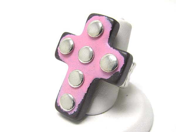 Metal stud colored formica cross stretch ringnecklace set