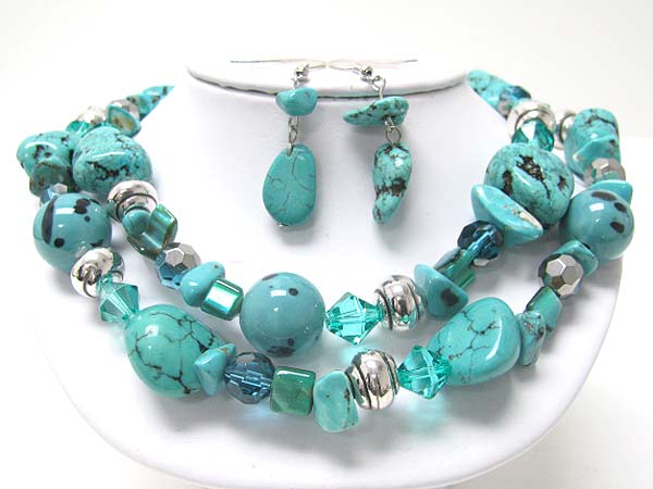 WHOLESALE DOUBLE STRAND MIXED NATURAL STONE NECKLACE EARRING SET 352475