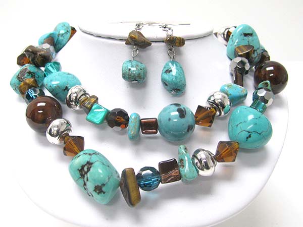 Double strand mixed natural stone necklace earring set