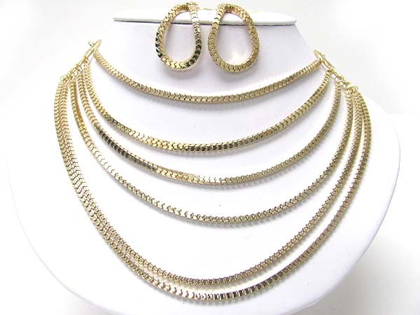 Multi row metal box chain neckalce earring set