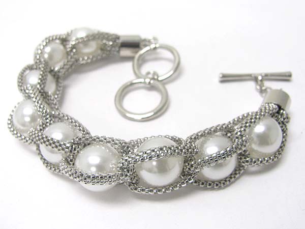 WHOLESALE PEARL BALL AND METAL TUBE CHAIN TOGGLE BRACELET 352512