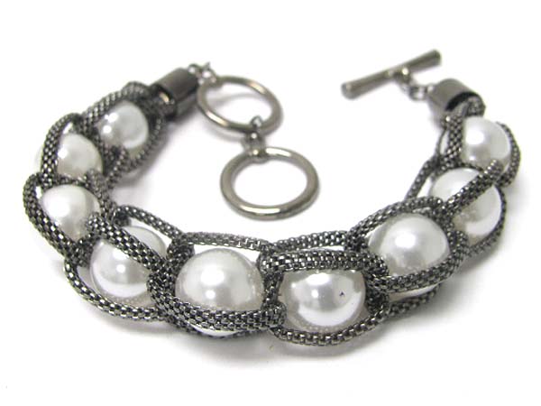 Pearl ball and metal tube chain toggle bracelet