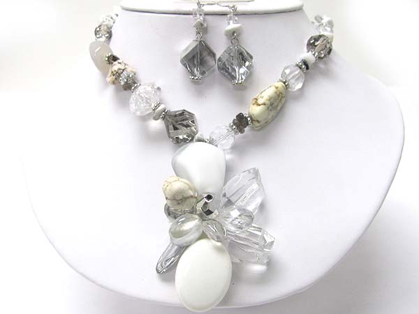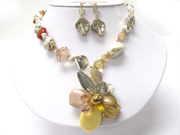 Natural stone nad multi beadsflower pendant necklace earrign set