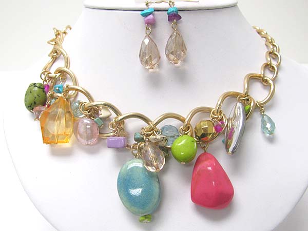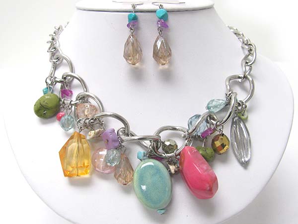 WHOLESALE MIXED CHUNKY STONE AND BEADS DANGLE NECKLACE EARRING SET? 352579