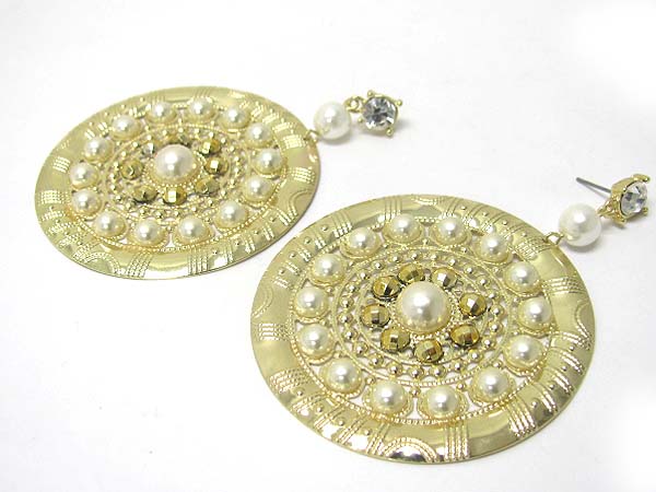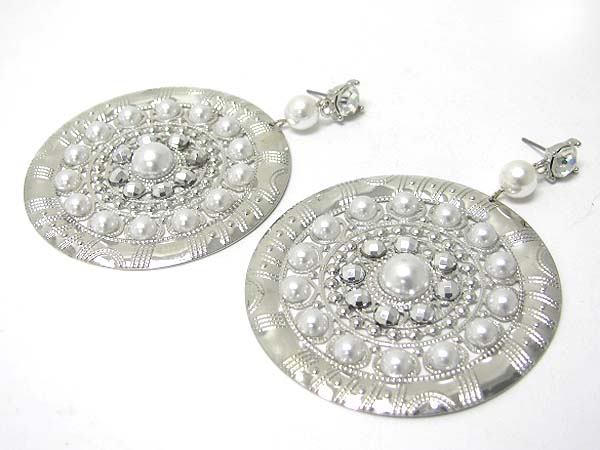 WHOLESALE BEADS AND PEARL STUD ROUND METAL DISK EARRING 352607
