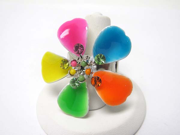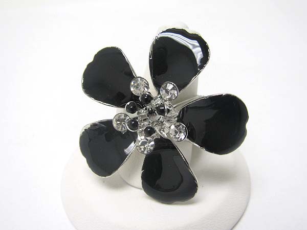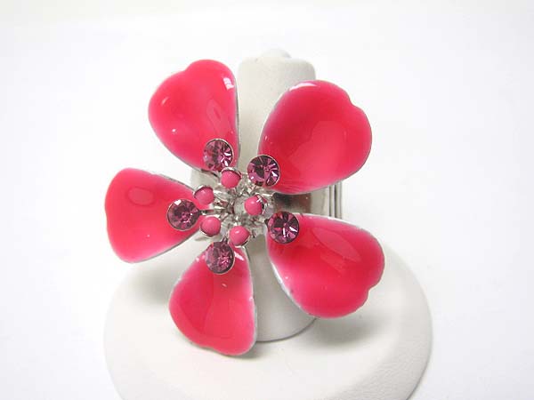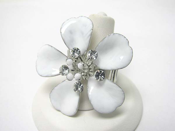 Crystal stud enamel metal flower stretch ring?