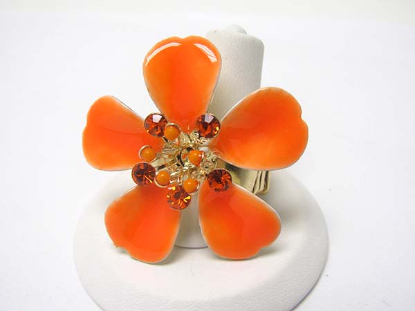 WHOLESALE CRYSTAL STUD ENAMEL METAL FLOWER STRETCH RING? 352642
