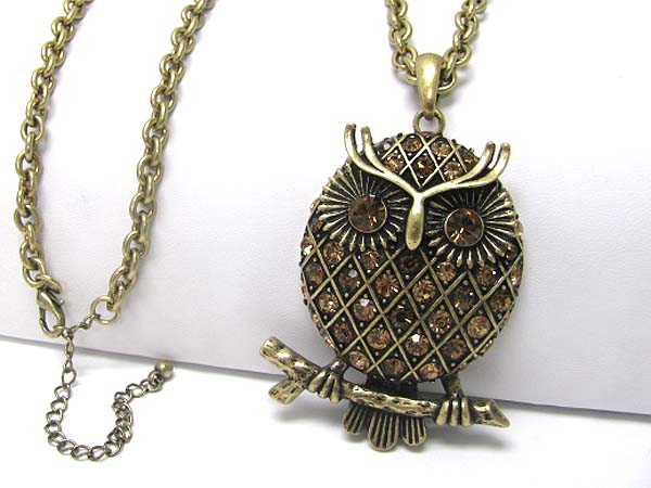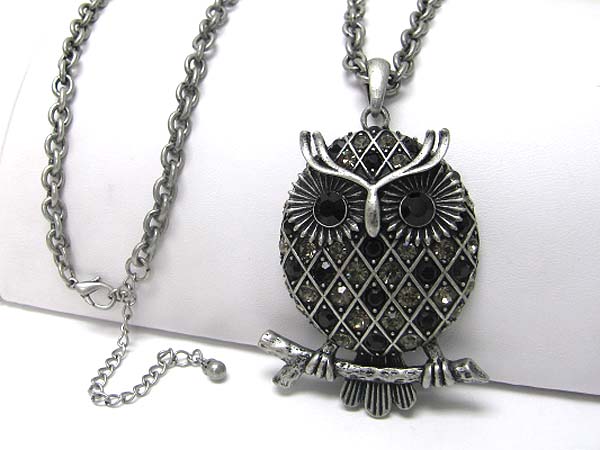 WHOLESALE CRYSTAL STUD BIG EYE OWL PENDANT LONG NECKLACE? 352648