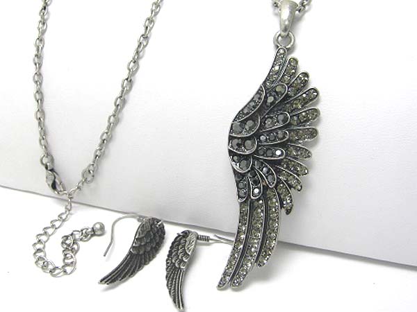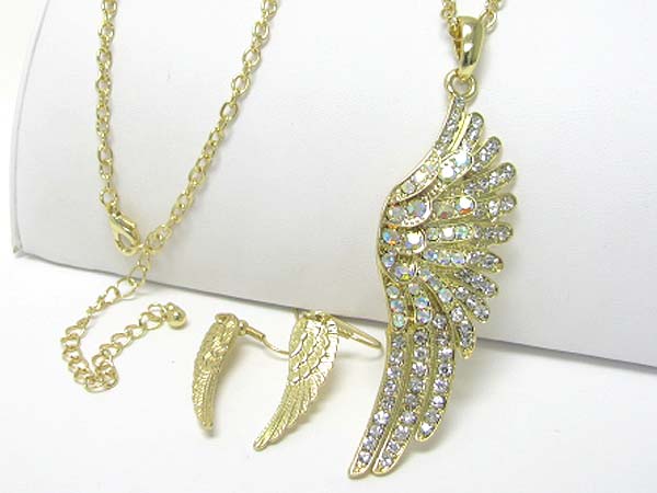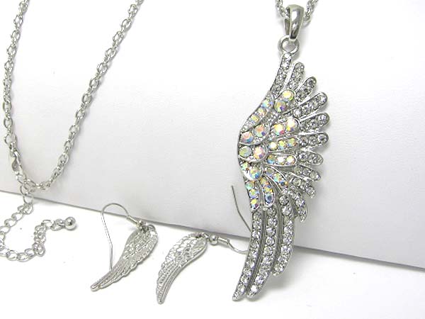 WHOLESALE CRYSTAL STUD WING PENDANT LONG NECKLACE AND EARRING SET? 352654