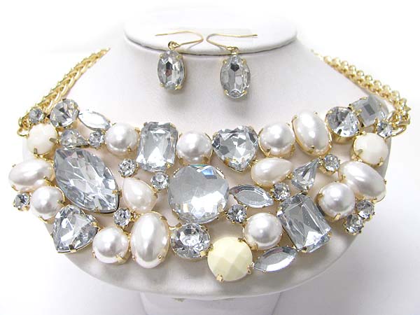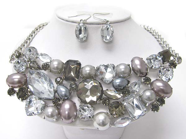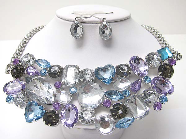WHOLESALE MULTI SHAPE CRYSTAL BIB STYLE NECKLACE EARRING SET 352701
