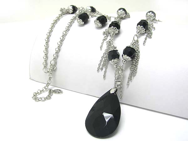 WHOLESALE FACET GLASS TEAR DROP AND METAL TASSEL NECKLACE EARRING SET 352728