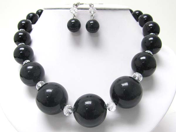 Chunky large acryl and facet glass beads necklace earring set