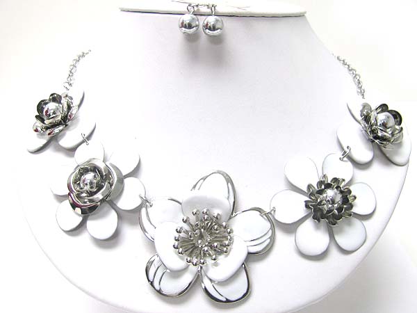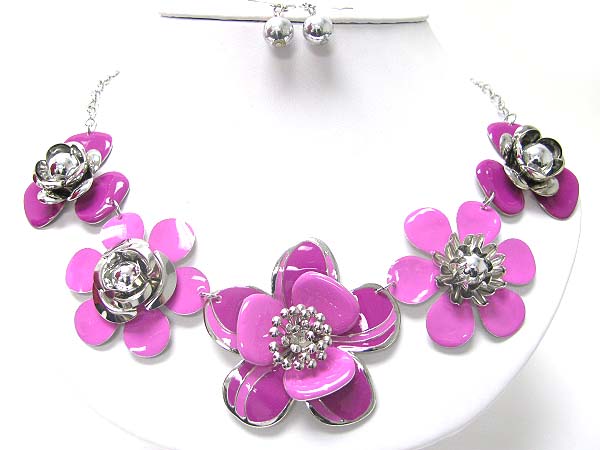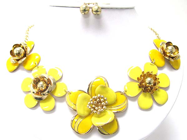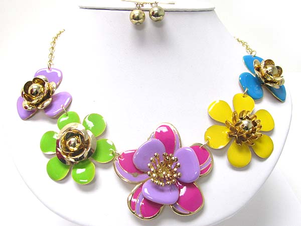 WHOLESALE MULTI METAL EPOXY FLOWER LINK NECKLACE EARRING SET 353000
