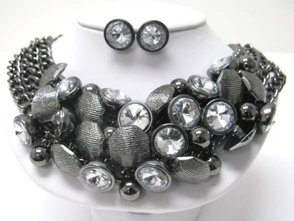 Crystal and chunky metal ball cluster necklace earring set?