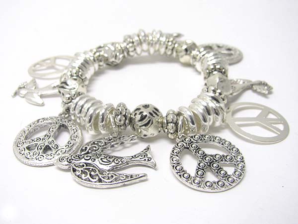 WHOLESALE PEACE THEME METAL TEXTURED CHARM STRETCH BRACELET 353128