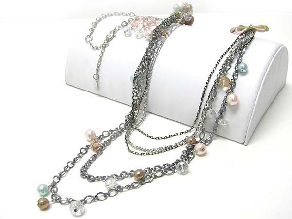 WHOLESALE PEARL AND GLASS STONE DANGLE LONG CHAIN NECKLACE EARRING SET 353154