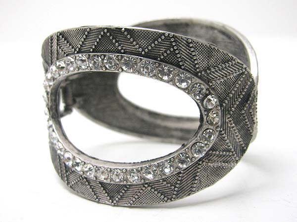 Crystal stud textured metal hinge bangle