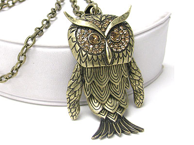 WHOLESALE CRYSTAL STUD OWL PENDANT LONG NECKLACE 353216
