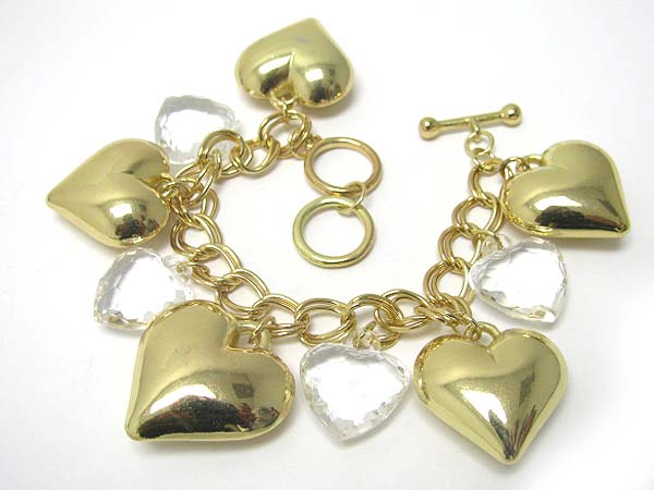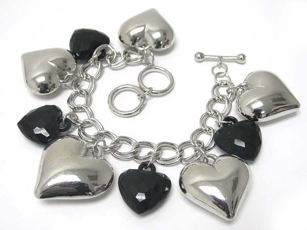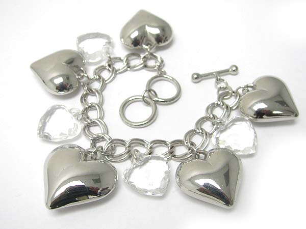 Metal and acryl heart dangle toggle bracelet