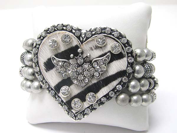 Crystal stud heart top multi row metal stretch bracelet